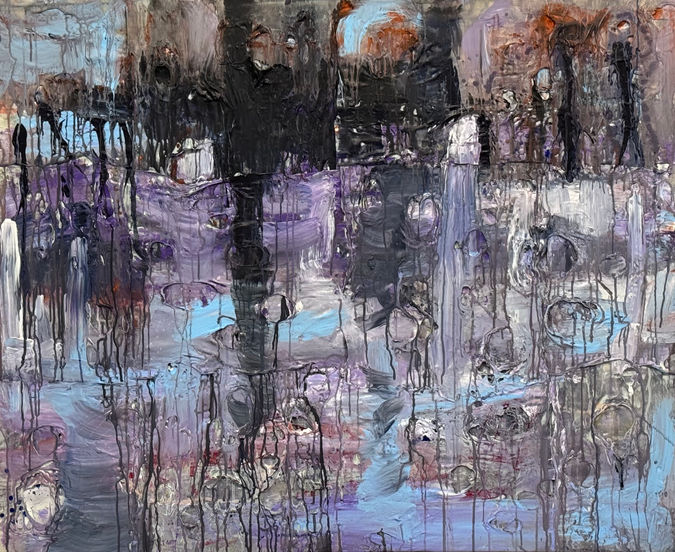 Folienverschmelzung auf Leinwand, Acryl, Blattgold